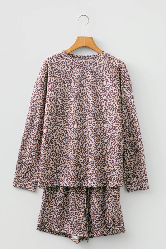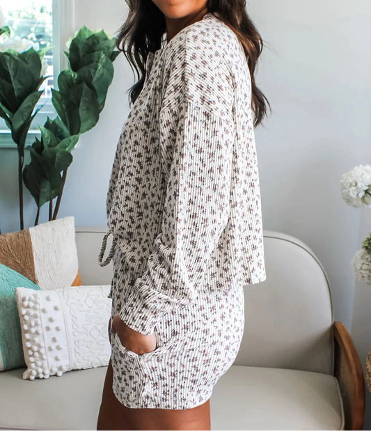 Long Sleeve Top Drawstring Shorts 2pcs Outfit