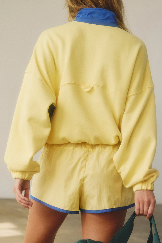 Color Block Patchwork Half Button Pullover and Shorts 2pcs Outfit