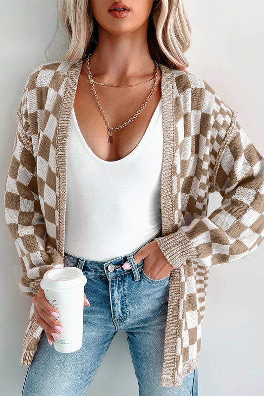 Colorblock Drop Shoulder Buttoned Loose Cardigan