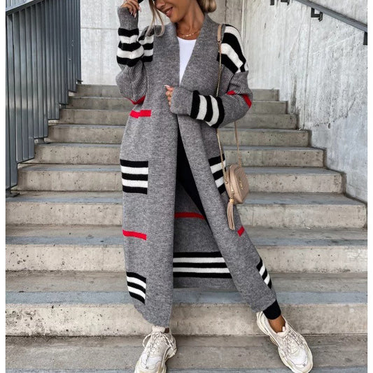 Striped Open Front Longline Sweater Cardigan