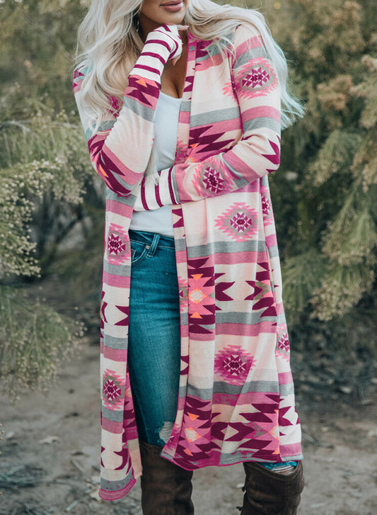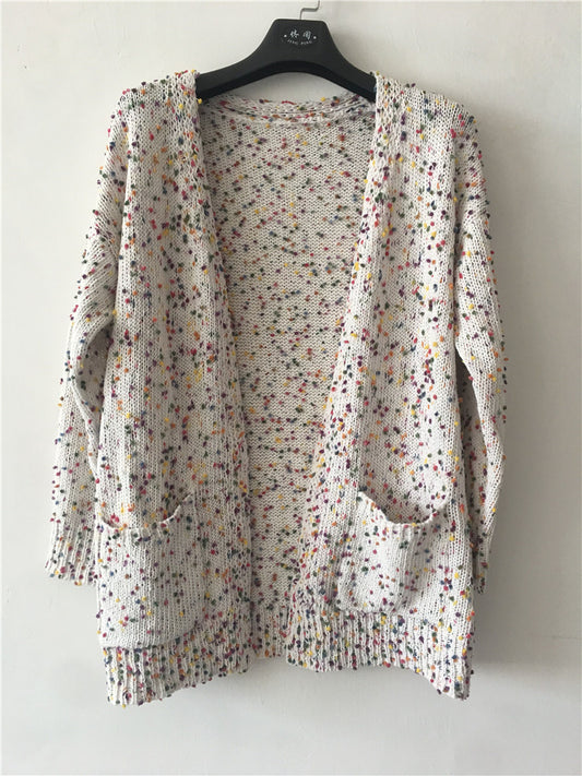 Color Dot Long Sleeve Pocket Sweater Cardigan
