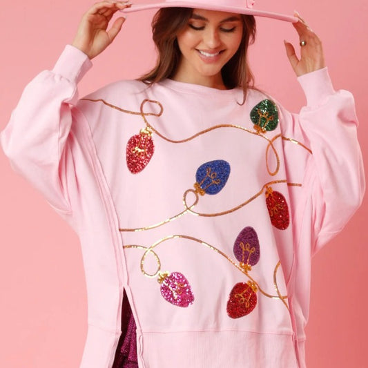 Christmas Sequined Sleeves Crew Neck Printed Sweatshirt