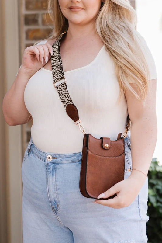 Preorder-Geometric Strap PU Leather Crossbody Bag