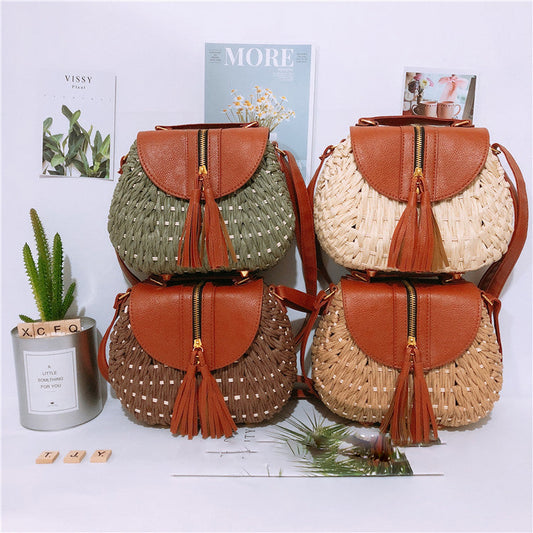 Bamboo Weaving Leather Flap Tassel Shoulder Bag