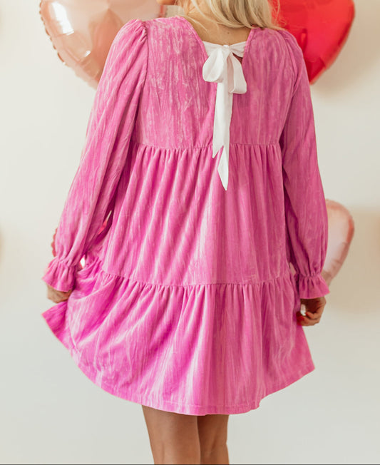 Flounce Sleeve Tiered Ruffled Velvet Mini Dress