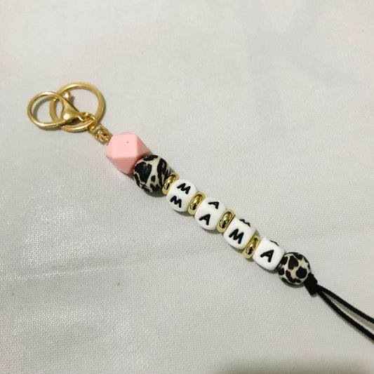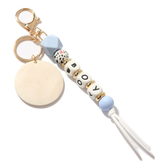 Alphabet Silicone Bead Wood Chip Keychain|2PC
