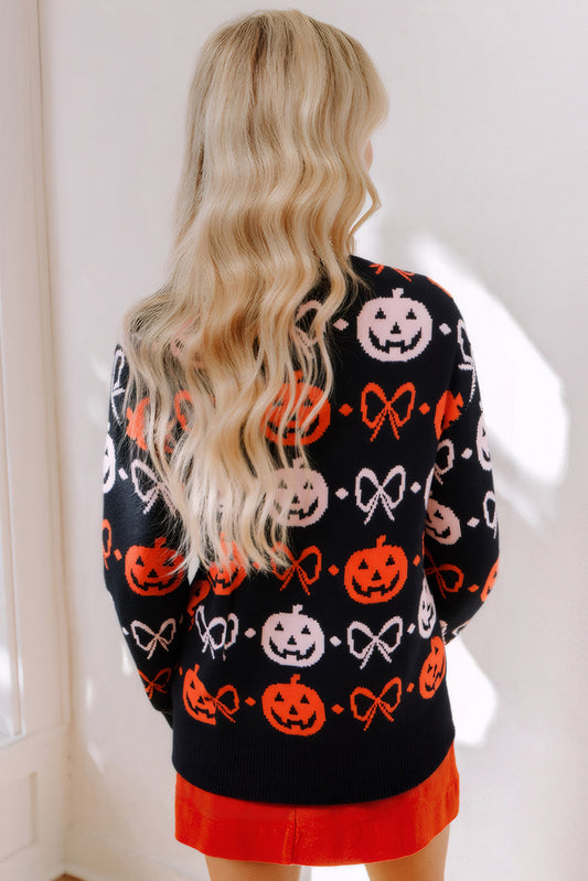 Halloween Pumpkin Bow Knit Button V Neck Sweater Cardigan