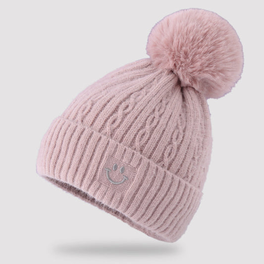 Embroidered smiling face wool hat