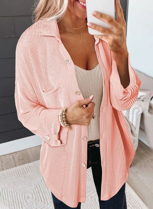 Button Up Contrast Knitted Sleeves Hooded Jacket