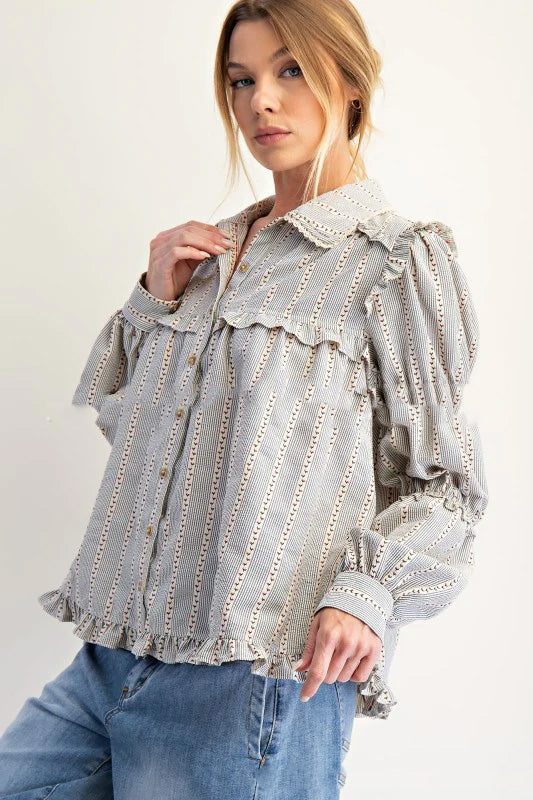 Women's Ruffled Long-sleeved Striped Shirt Jacket