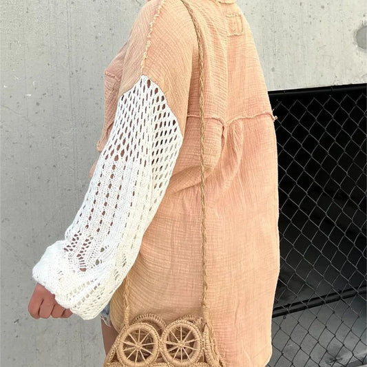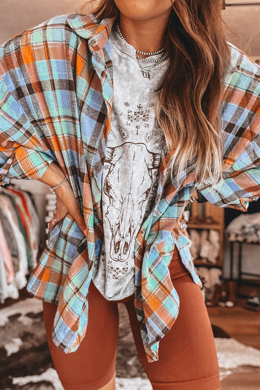 (Pre order/8.20)Plaid Corduroy Patchwork Chest Pocket Shacket