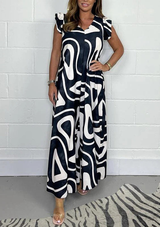 Checkered Textured Short Sleeve Knotted Waist Jumpsuit