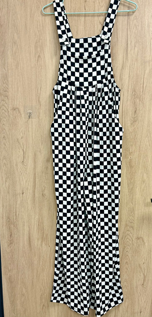 Checkered Pocketed Wide Leg Jumpsuit