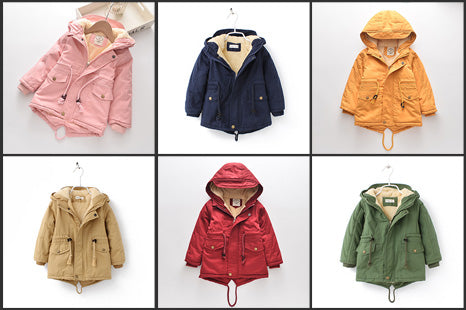 Children's cotton-padded embroidered hooded color-blocked jacket