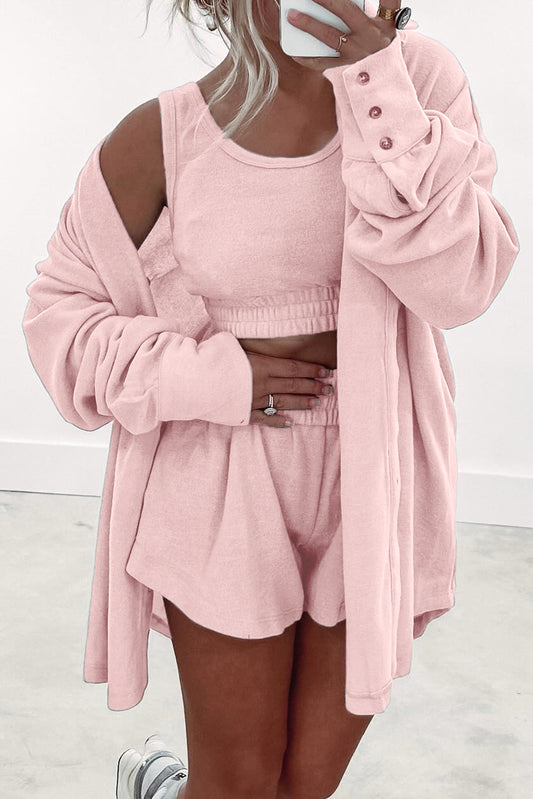 3 Pcs Crop Tank Top Shorts with Cardigan Lounge Set
