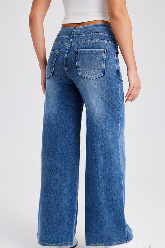 Elastic Waistband Pull On Wide Leg Jeans
