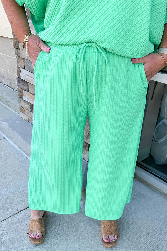 Plus Size Textured Batwing Sleeve Tee Wide Leg Pants Set