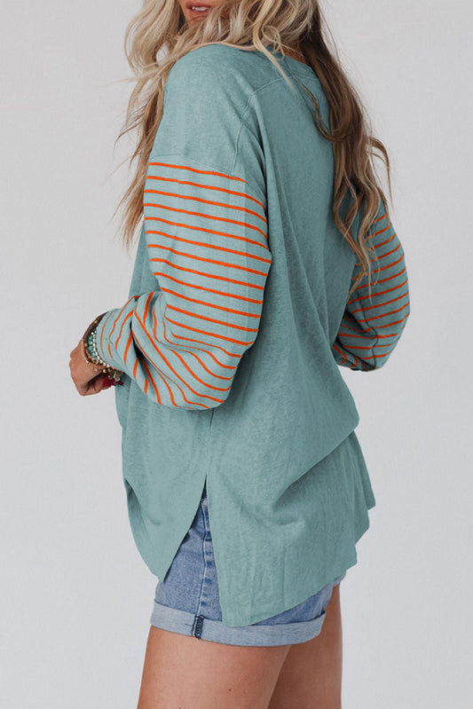 Plus Size Striped Colorblock Tee with Slits