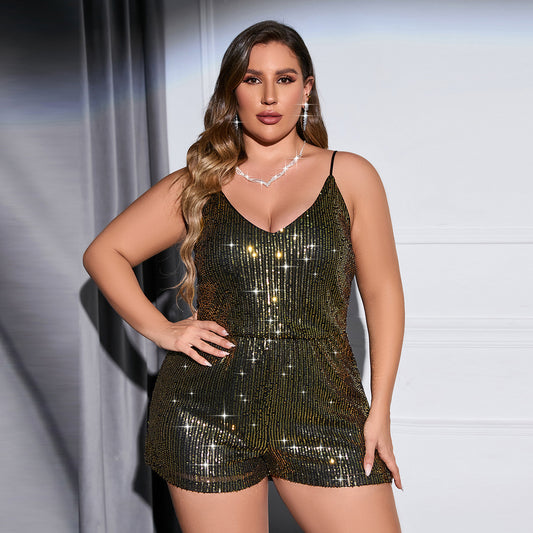 Plus Size Sequin Strap Jumpsuit