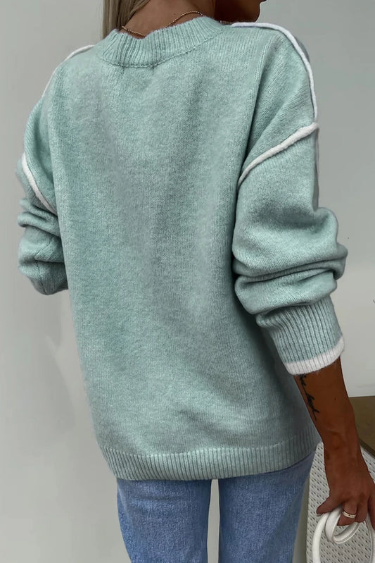 Colorblock Textured Knit Bubble Sleeve Sweater