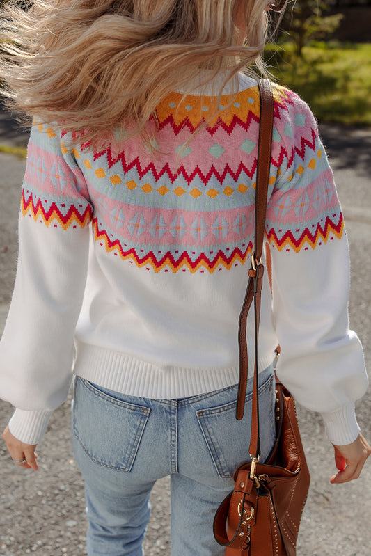 Ethnic Geometric Colorblock Print Drop Shoulder Sweater