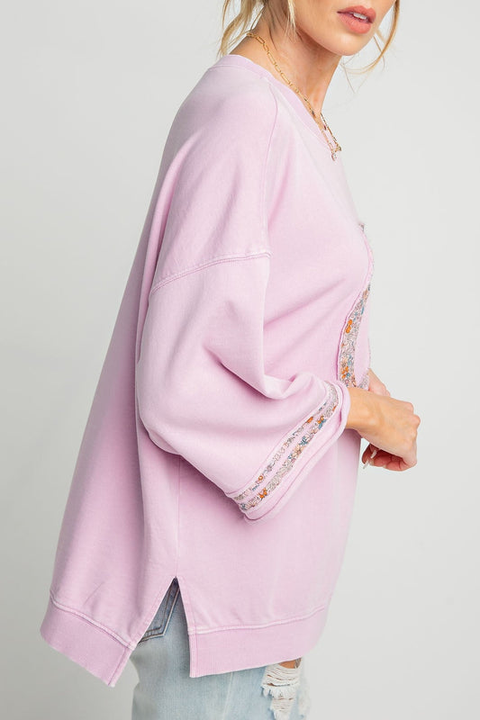 Plus Size Patchwork Sleeve Split Sweatshirt