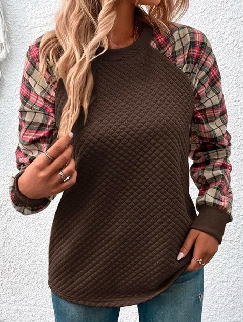 Solid Ribbed Knit Round Neck Pullover Sweatshirt