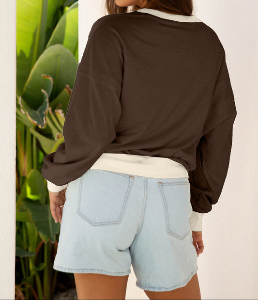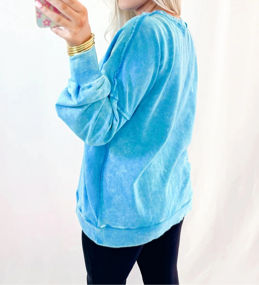 Notched Neck Mineral Wash Baggy Sweatshirt