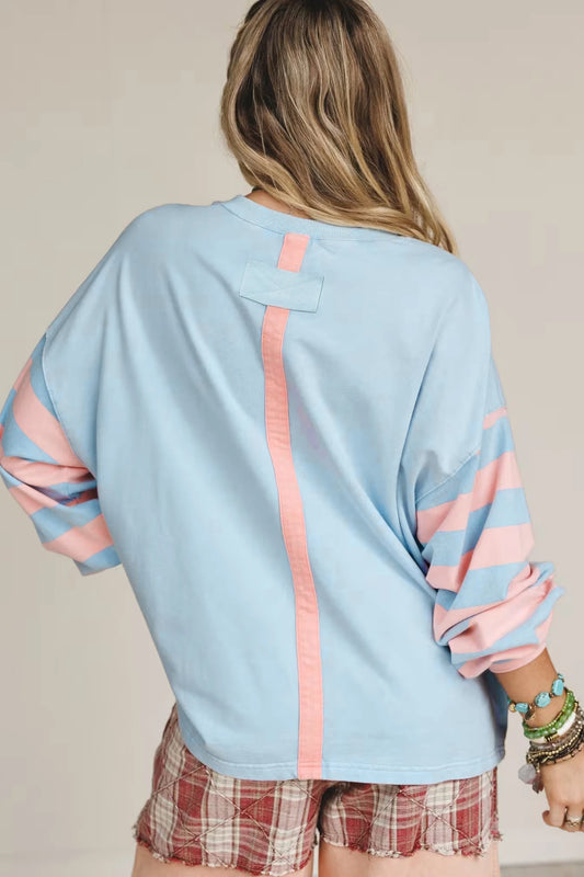 Drop Shoulder Striped Long Sleeve Top