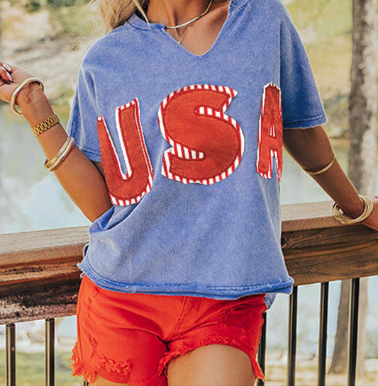 Loose Casual Style Printed Short Sleeved Top