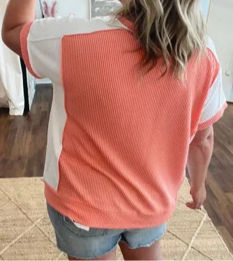 Carrot Twist Rib Colorblock Hi Low Plus Size Short Sleeve Top