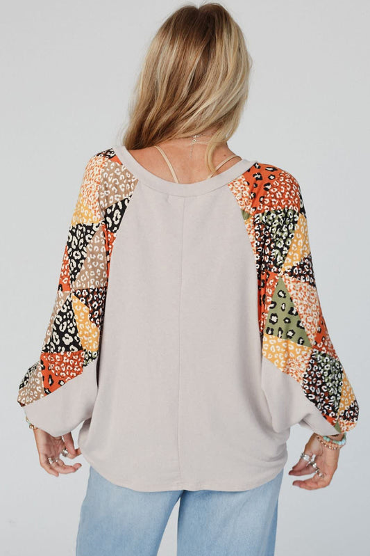 Faux 2 Piece Floral Sleeve Patchwork Tee