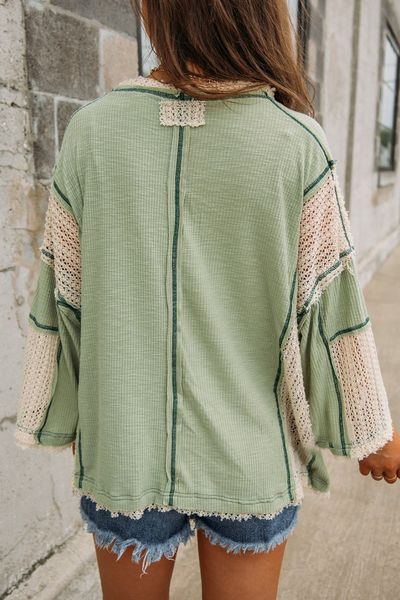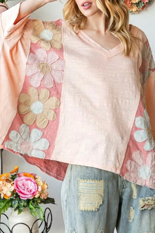 Floral Patchwork Bracelet Sleeve Oversized Top