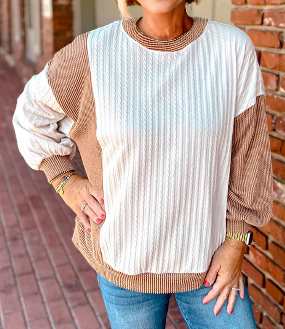 Cable Texture Ribbed Color Block Plus Size Knit Top