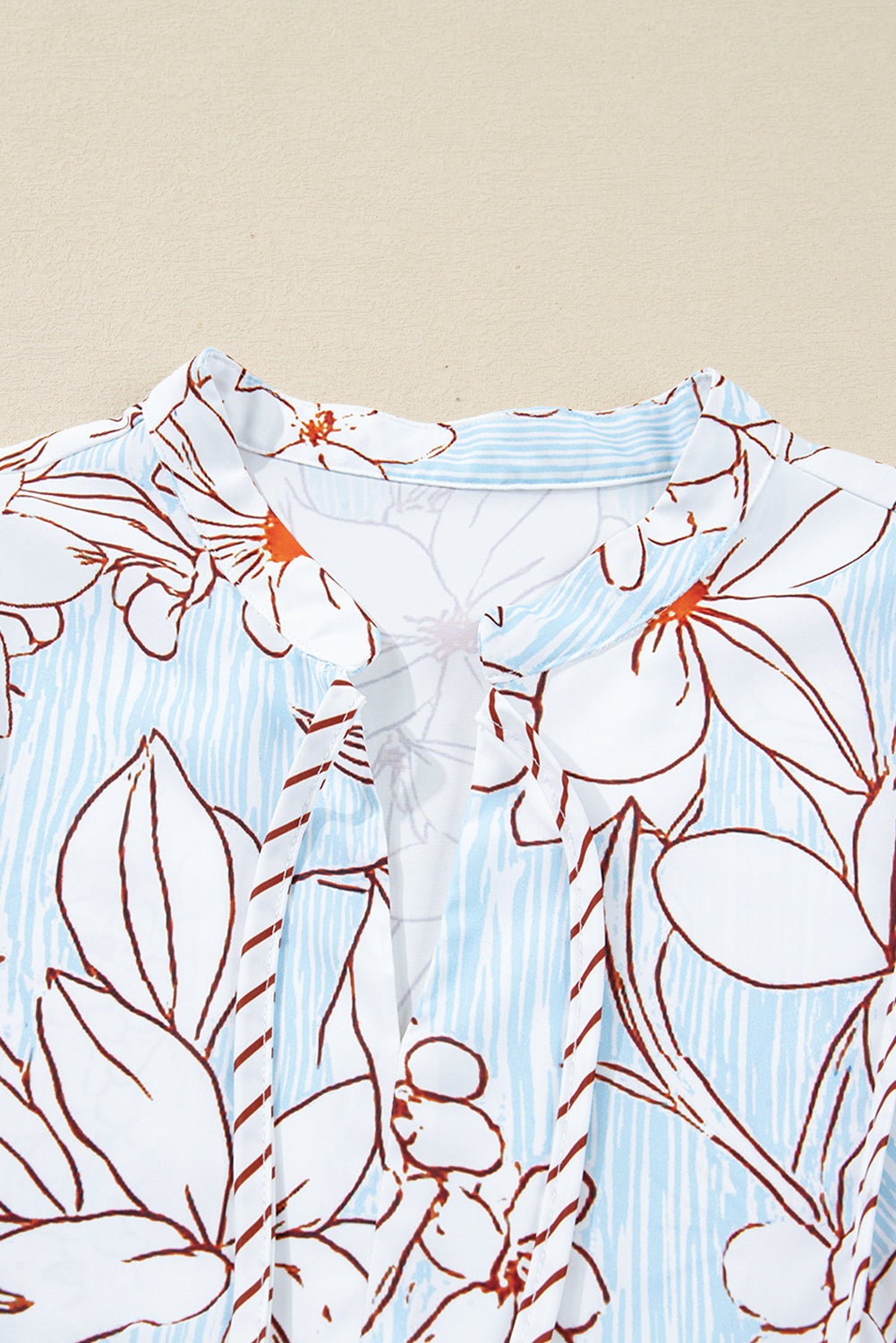 Floral Print Tie Neck 3/4 Sleeve Mini Dress