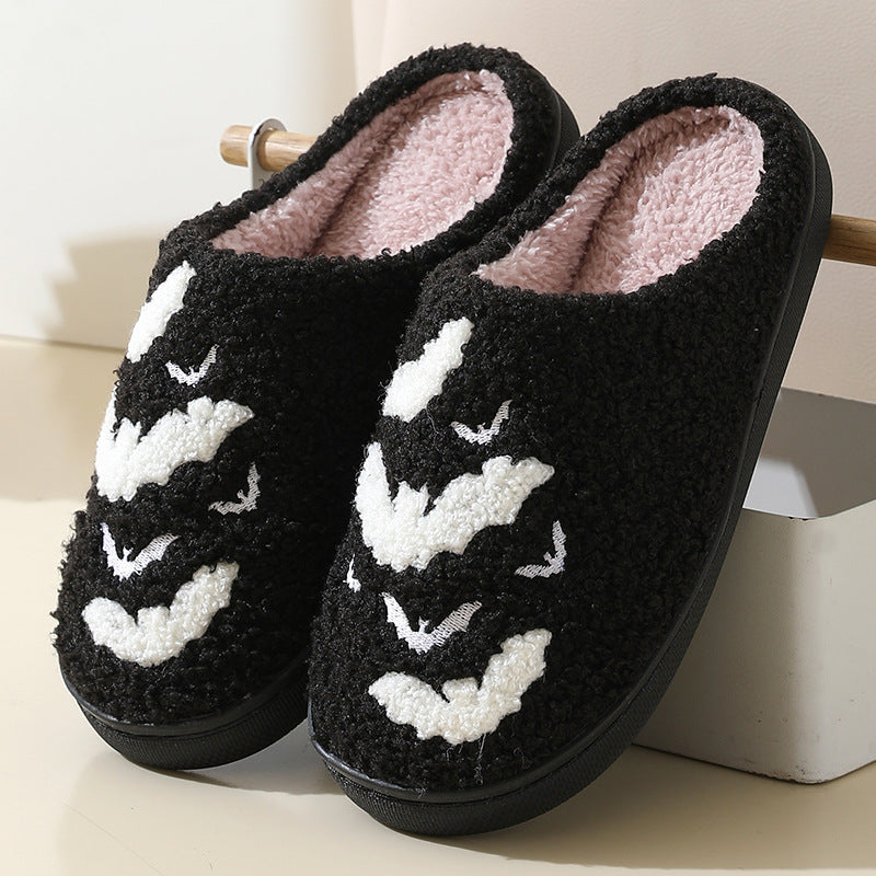 These stylish and trendy house slippers combine the comfort of traditional house shoes with a modern twist. With their fluffy faux fur and adorable spooky pattern, these designer slip-on slippers are sure to turn heads and keep your feet cozy all day long. Experience the perfect blend of style and comfort with our trendy and comfy house shoes.