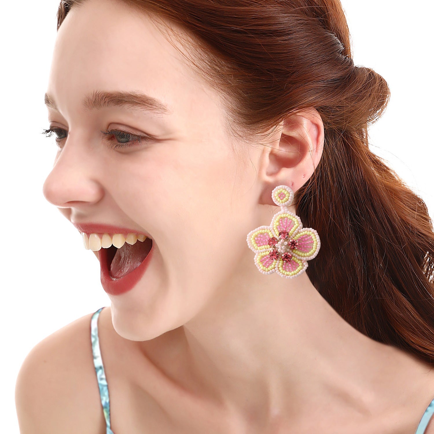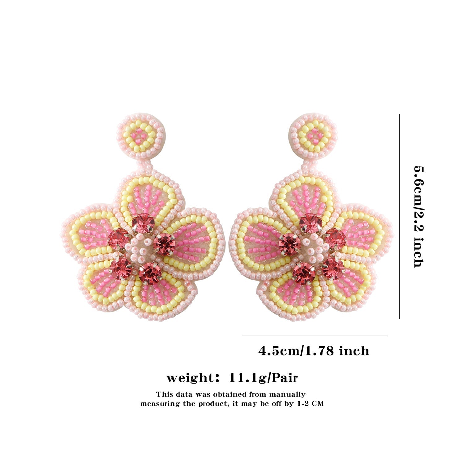 Hand-Beaded Floral Rice Bead Earrings