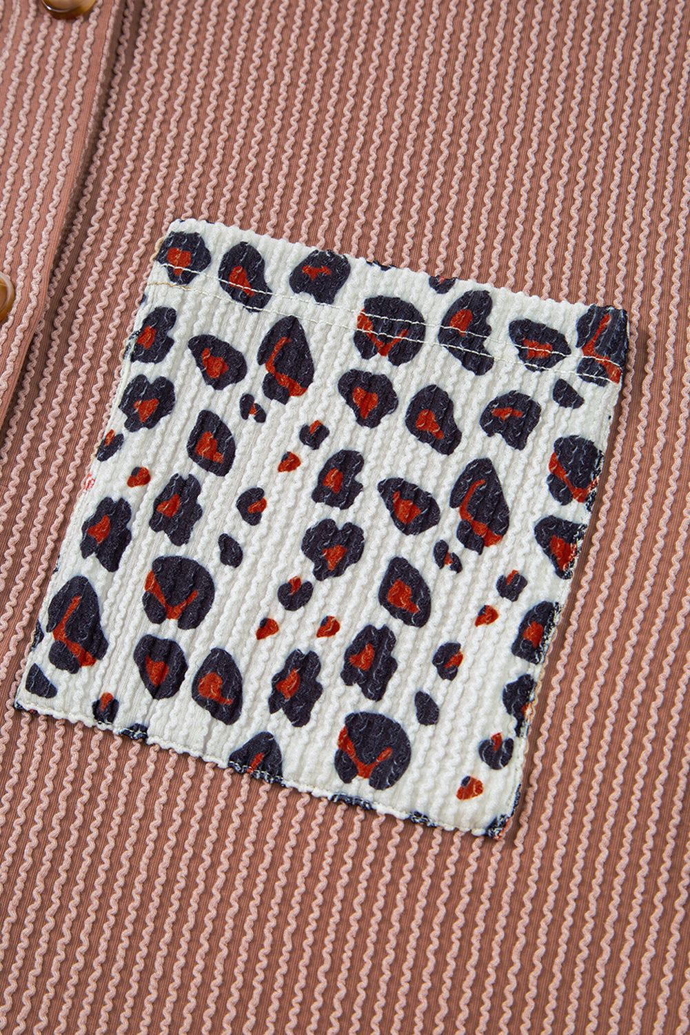 Leopard Patched Twisted Ribbed Western Casual Shacket