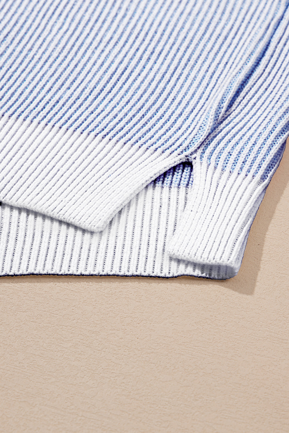 Plus Size Contrast Trim Crew Neck Rib Knit Drop Shoulder Sweater