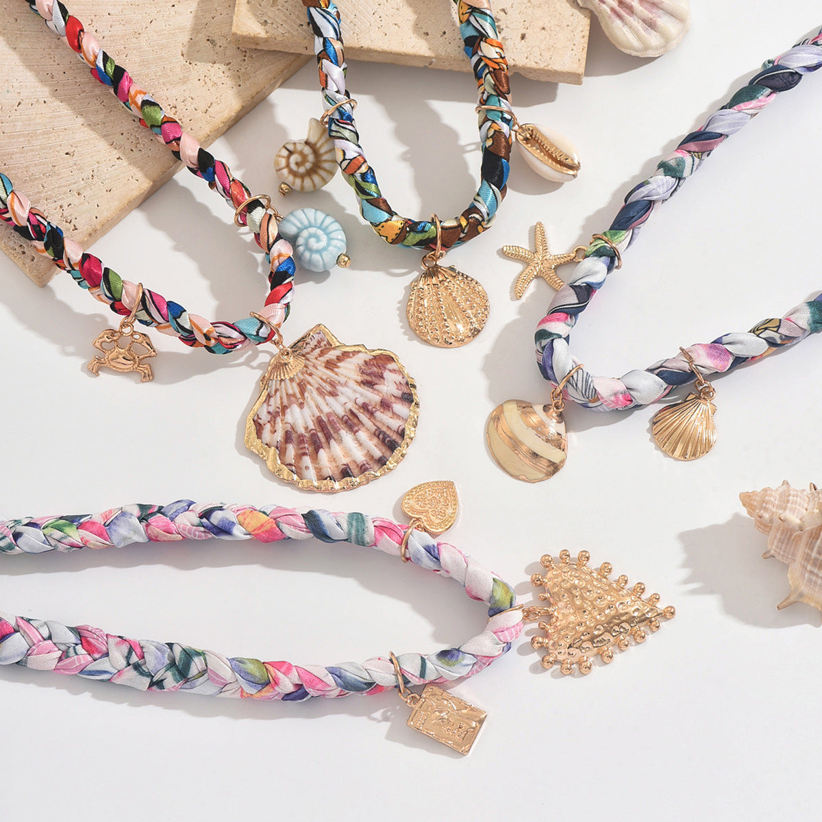 Silk Scarf with Leopard Print Braided Knot Collarbone Chain