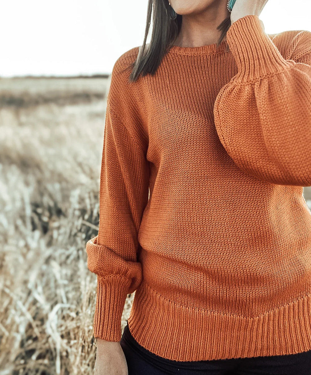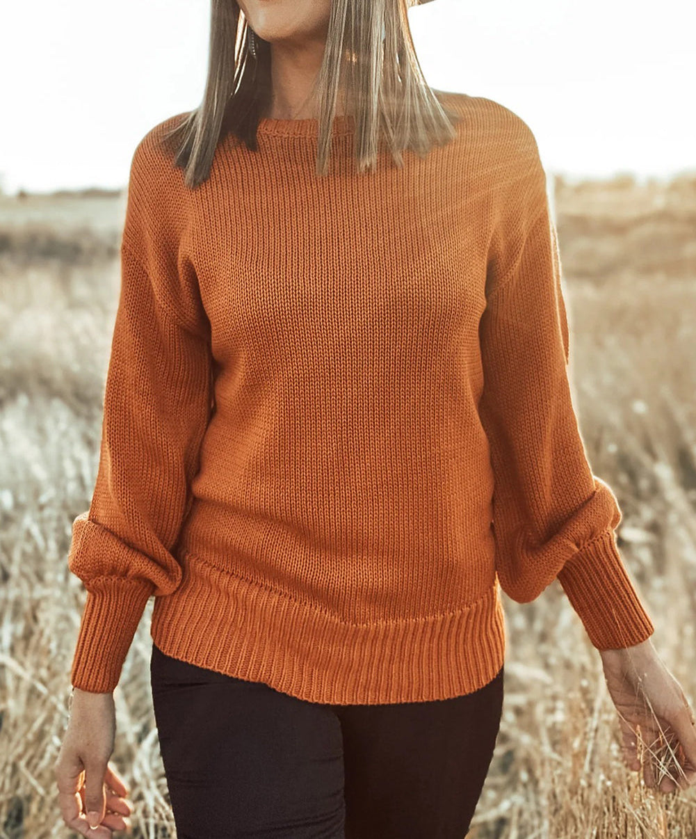 Solid Color Ribbed Trim Drop Shoulder Sweater