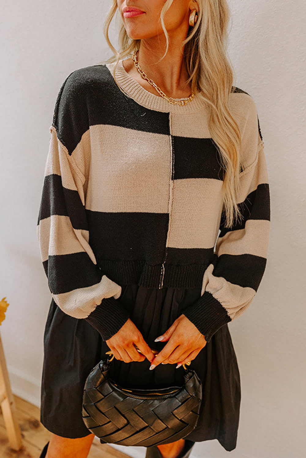 Two in One Knitted Top High Waist Splicing Hem Sweater Dress