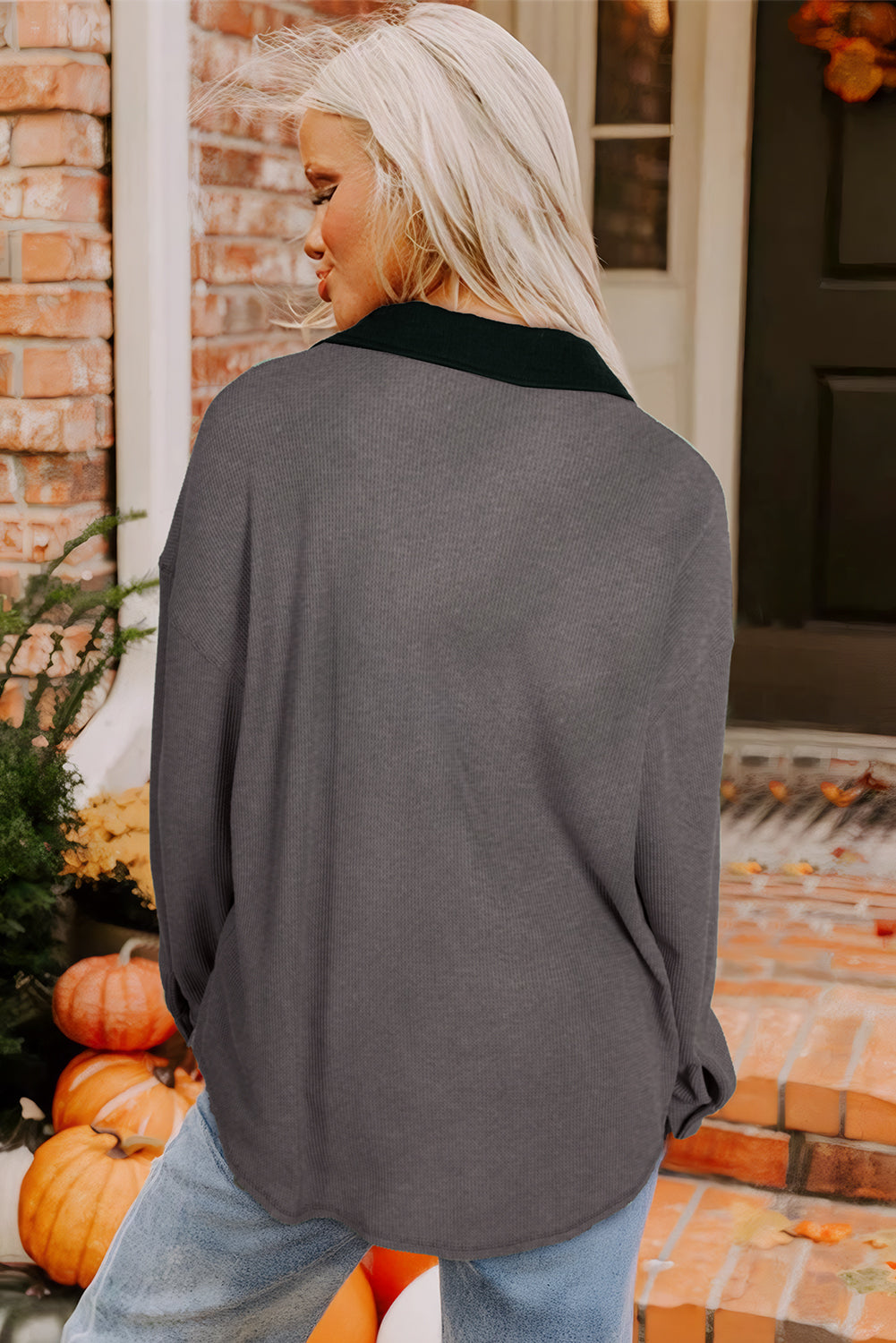 Waffle Knit Vintage Patchwork Button Up Loose Shirt