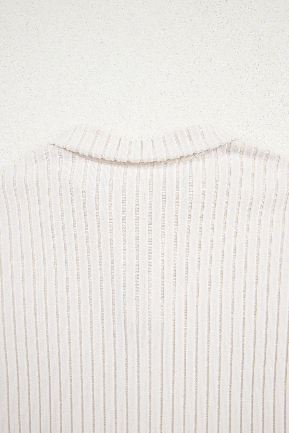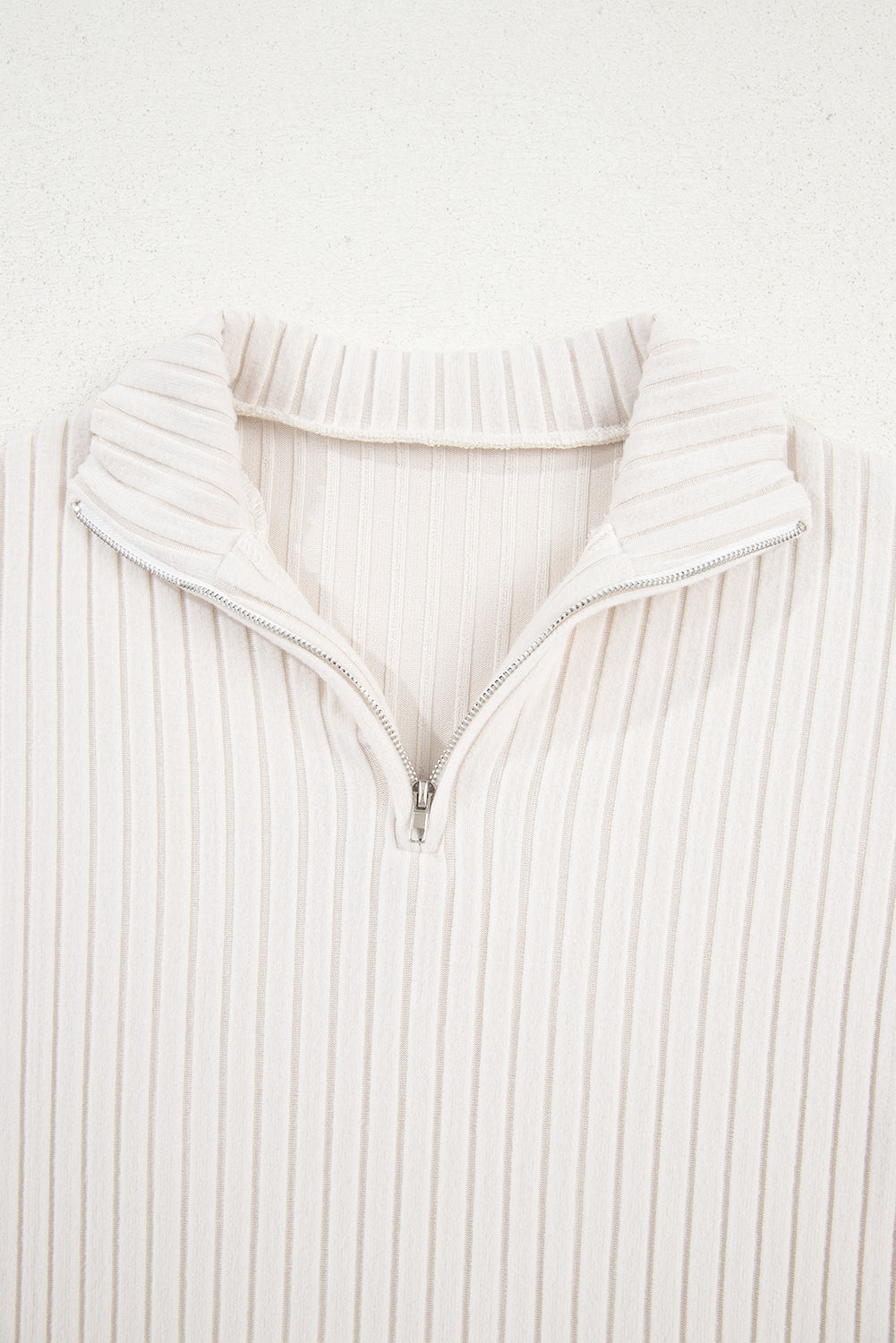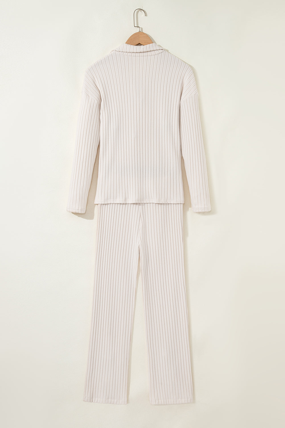 Zip Collar Ribbed Pullover Split Leg Lounge Pants Set